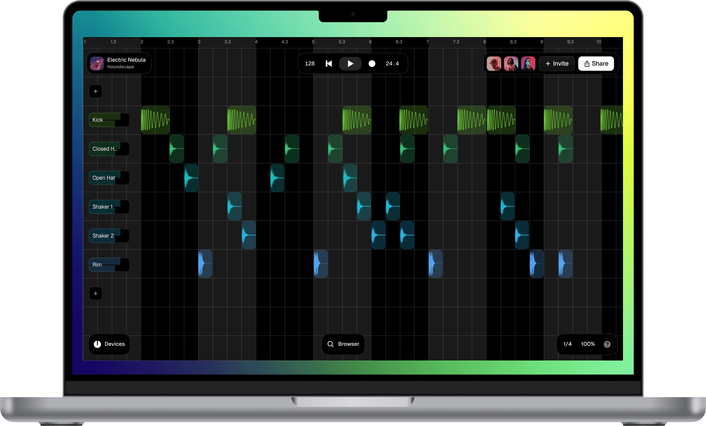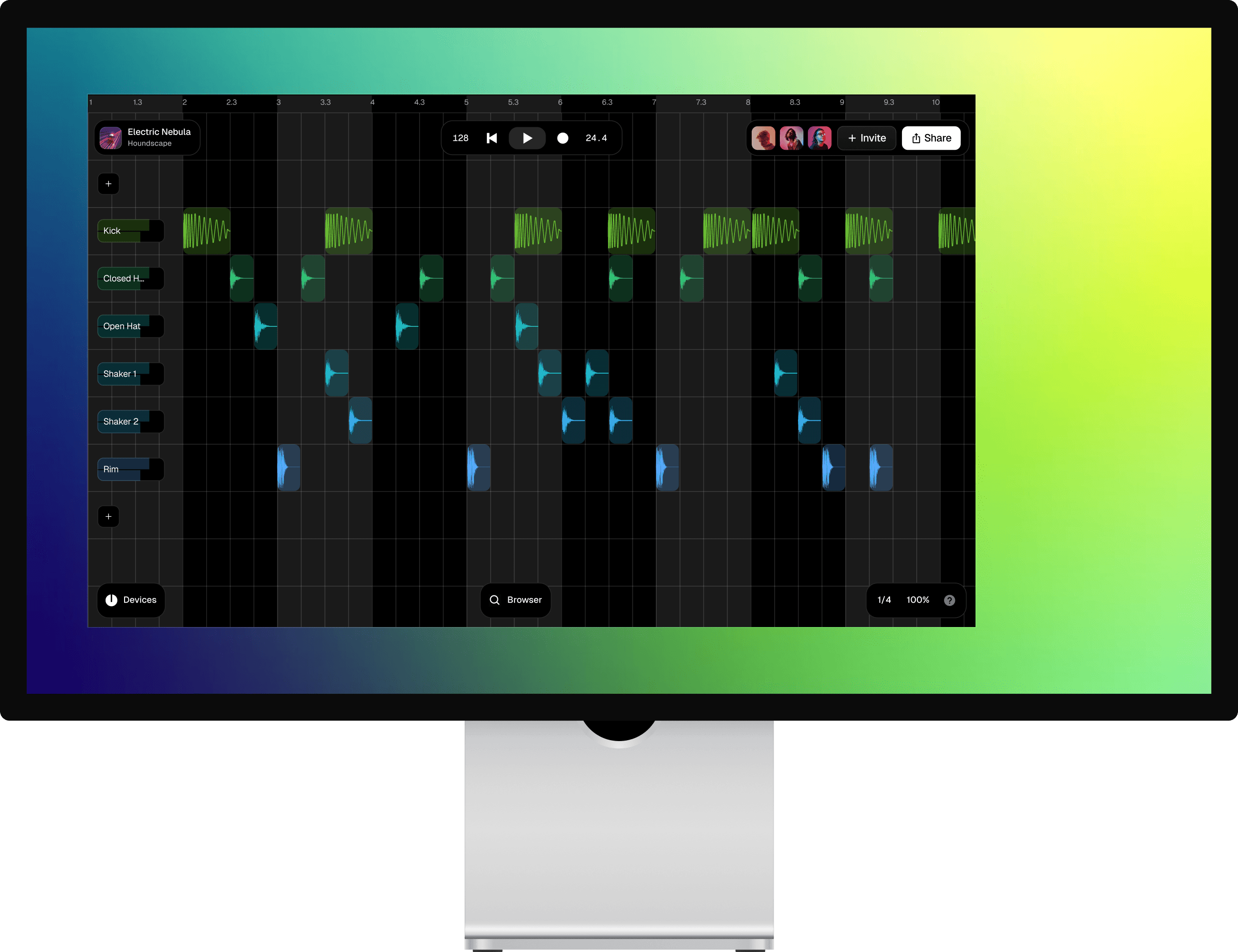 Collaborate and make beats together in real-time with anyone, anywhere. With high-grade sounds, effects, and plugins, Sesh is a modern, all-in-one digital audio workstation designed and engineered to make music fast and easy online.