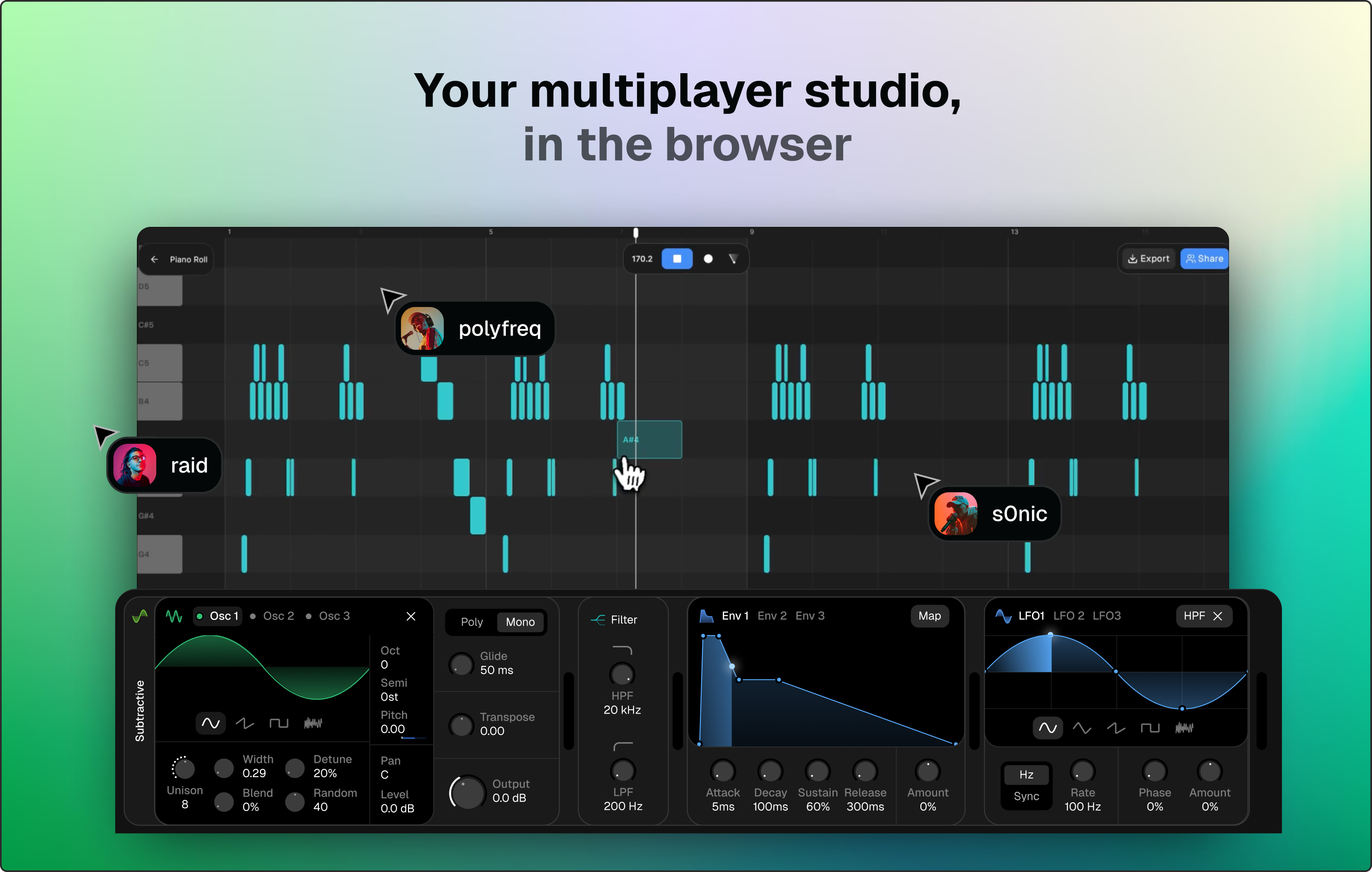 Analog synths and more — all built into your browser and ready for collaboration.